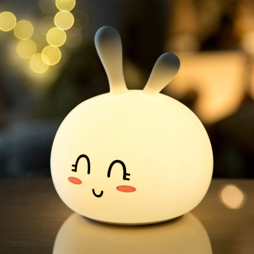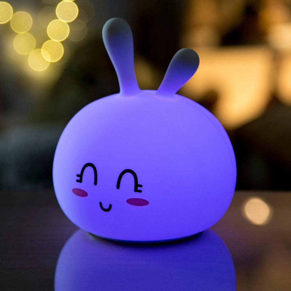 Nachtlicht Häschen aus Silikon in Weiß, leuchtet in 7 Farben