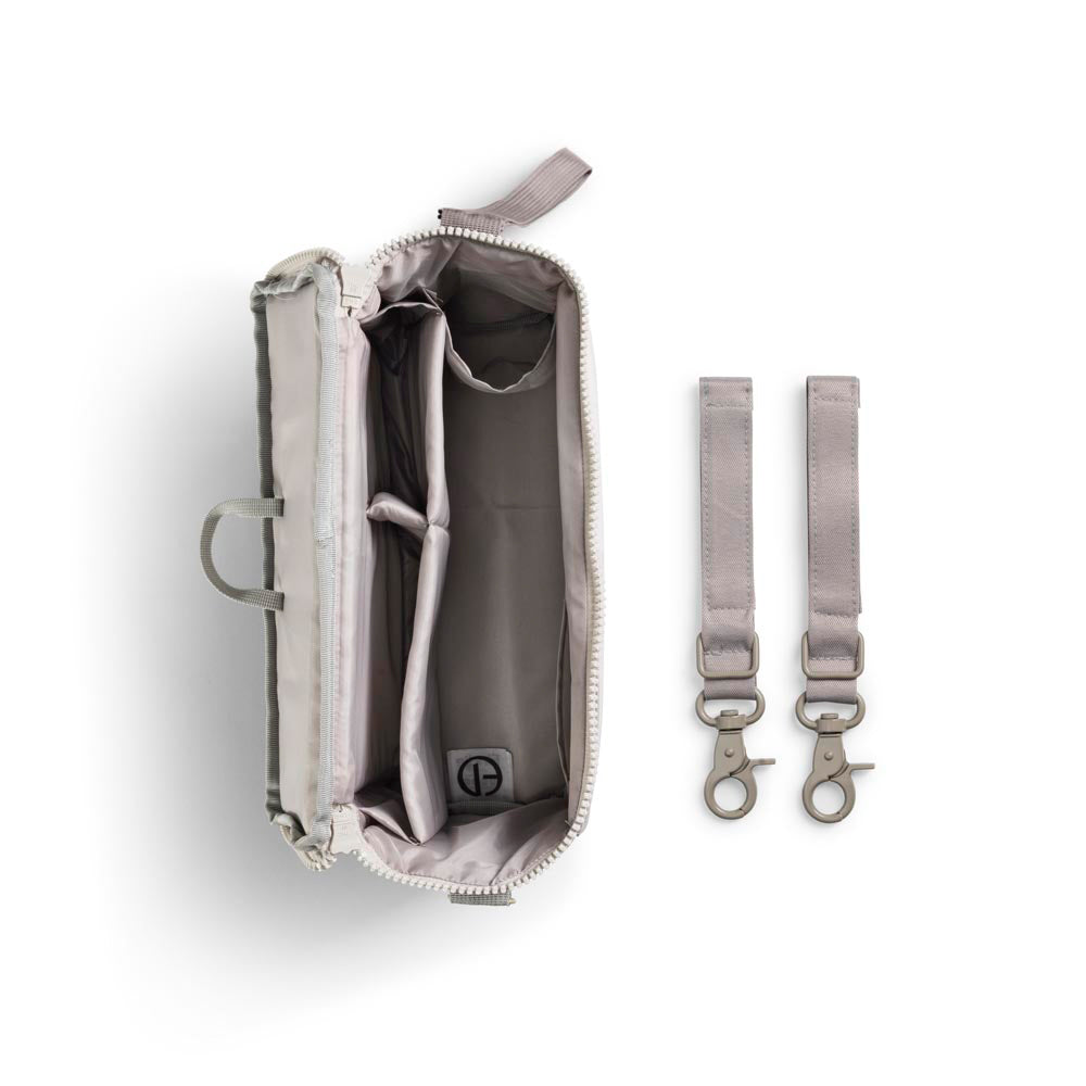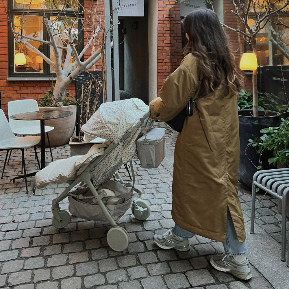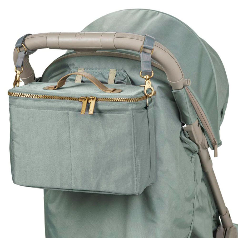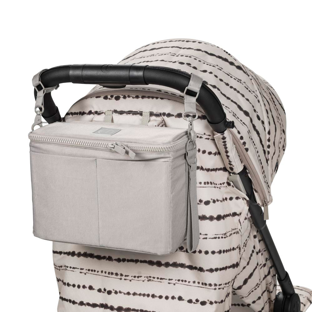 Dank der praktischen Klettbänder lässt sich die Tasche flexibel am Kinderwagen befestigen. Der vollständig schließbare Reißverschluss schützt den Inhalt vor neugierigen Händen und plötzlichem Regen, während kleine Innen- und Außentaschen für extra Übersicht sorgen. Und wenn du nach Hause kommst, hängst du sie einfach an der Schlaufe an die Wand – hygienisch und ordentlich.