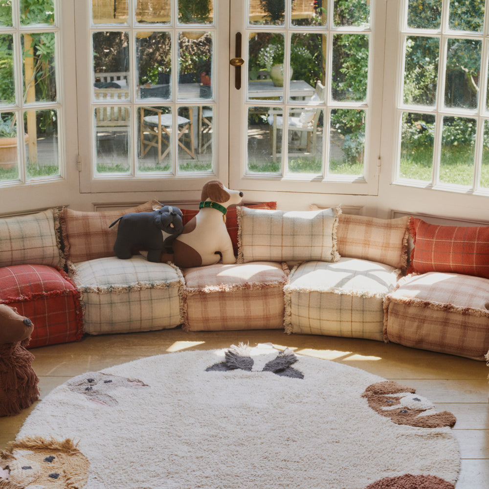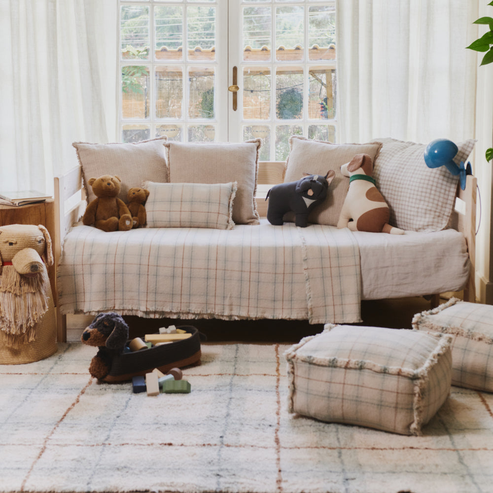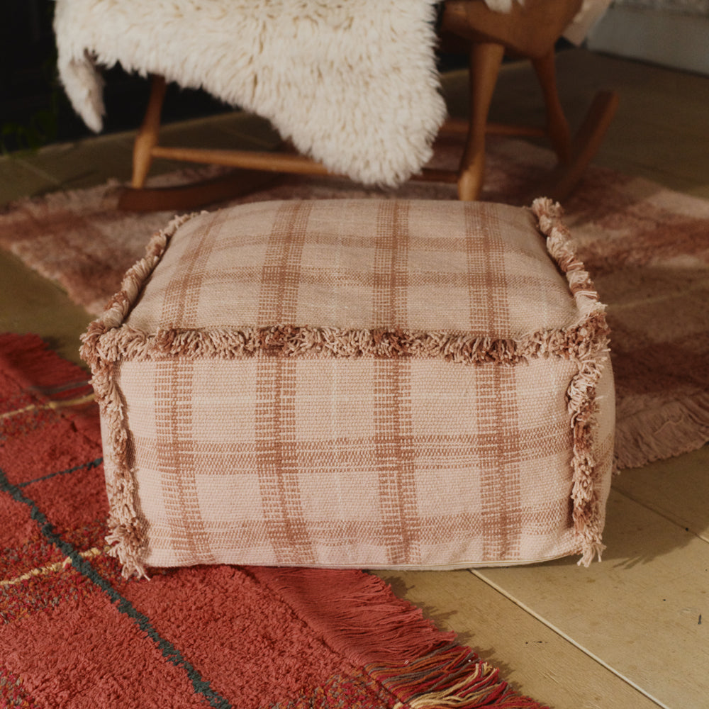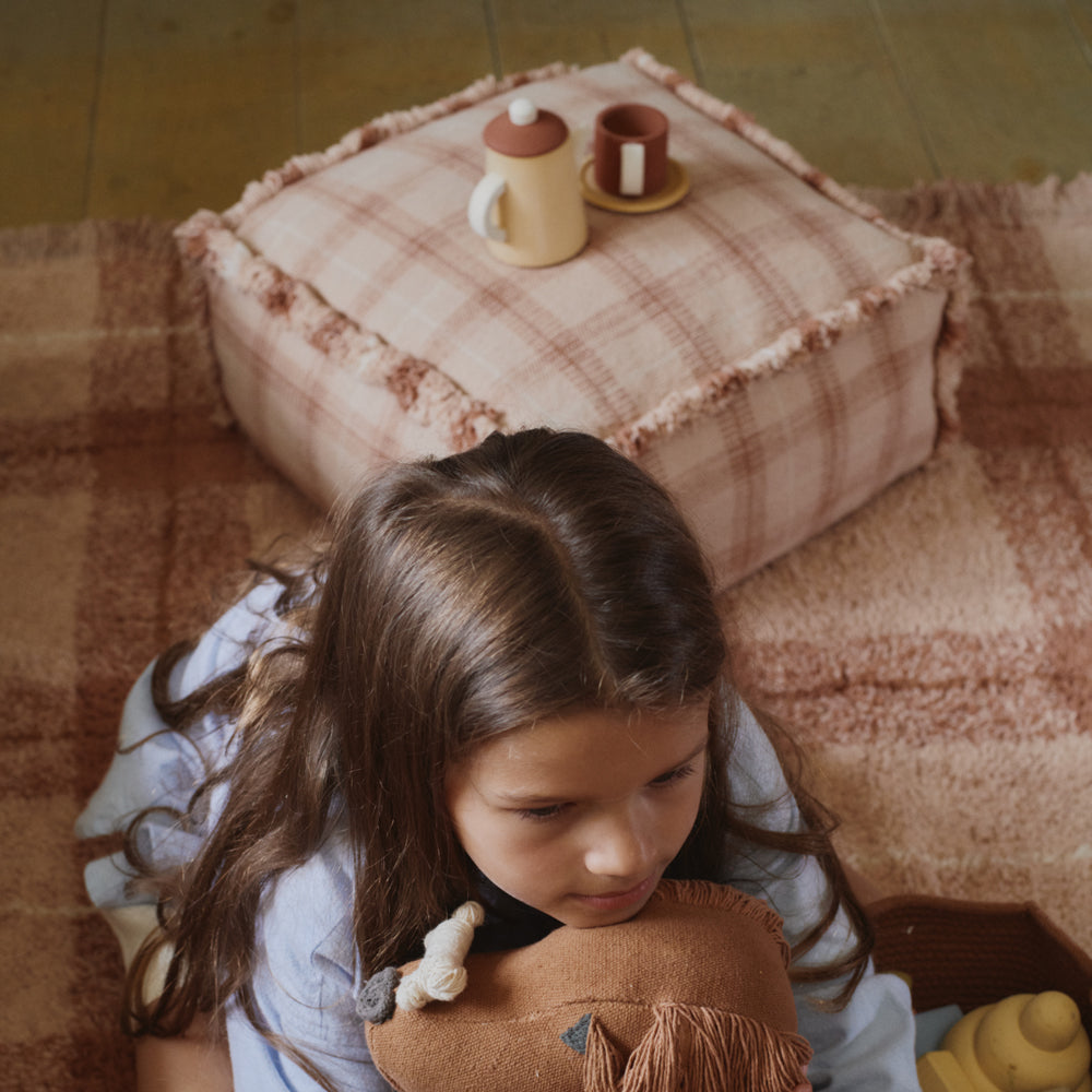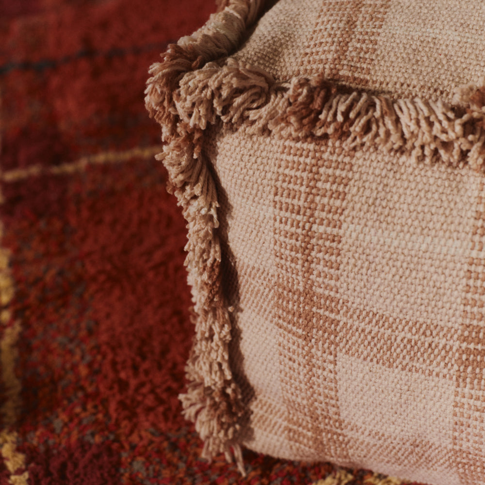 Mach das Kinderzimmer noch gemütlicher – mit dem handgewebten Pouf Karo! Sein klassisches Tartan-Muster in Rot, Salbei oder Rosé lädt dein Kind dazu ein, sich niederzulassen, zu entspannen oder in Fantasiewelten zu versinken. Die weichen Fransen und das angenehme Material machen jeden Moment auf dem Pouf zu einem kuscheligen Erlebnis.