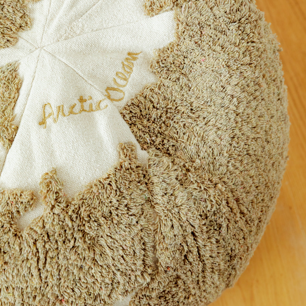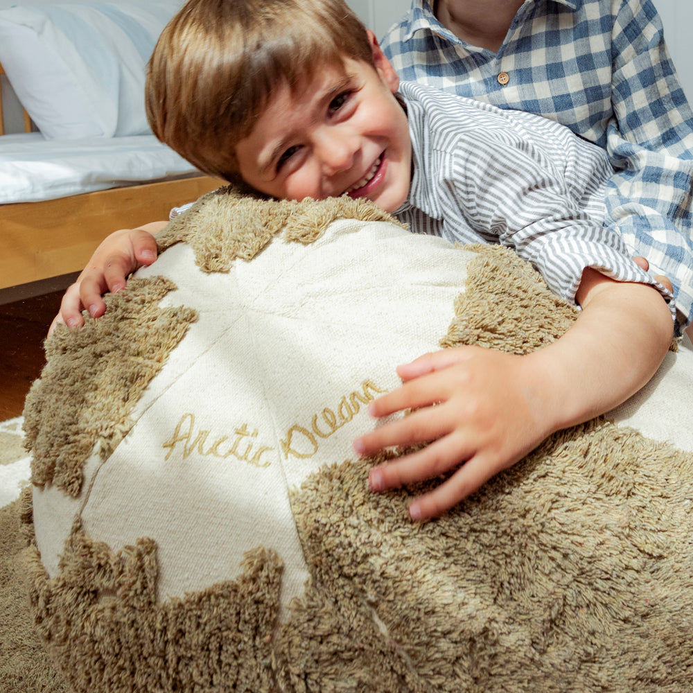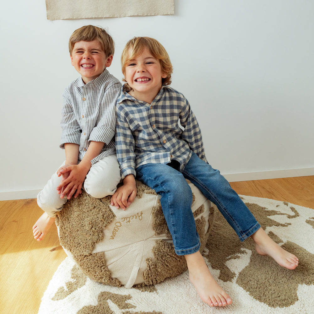 Dieser liebevoll handgefertigte Weltkarten-Pouf lädt dein Kind dazu ein, die Erde auf spielerische Weise zu erkunden. Mit seinem sanften, natürlichen Farbton und der Weltkarte wird er schnell zum Mittelpunkt im Kinderzimmer – perfekt zum Sitzen, Spielen oder Träumen von großen Abenteuern rund um den Globus.