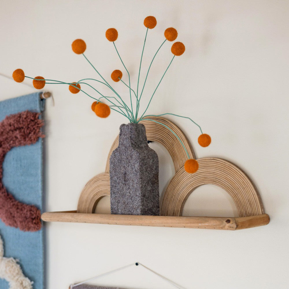 Das Wandregal Mara verzaubert mit seiner hübschen Form und aus natürlichem Rattan nicht nur das Kinderzimmer, sondern bringt auch Wärme und Geborgenheit in deinen Familienalltag. Es ist der perfekte Ort, um kleine Lieblingsstücke deines Kindes liebevoll in Szene zu setzen – ob Kuscheltiere, Bilderbücher oder selbstgemalte Kunstwerke.