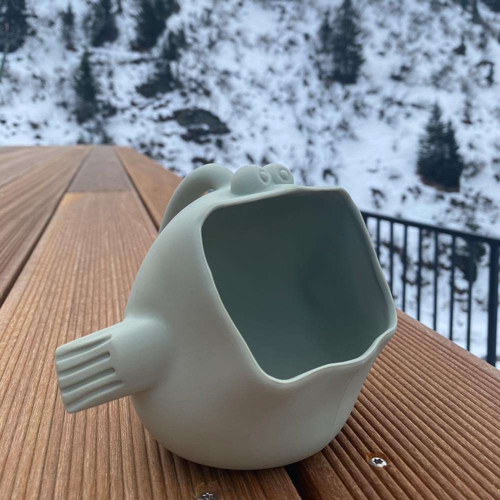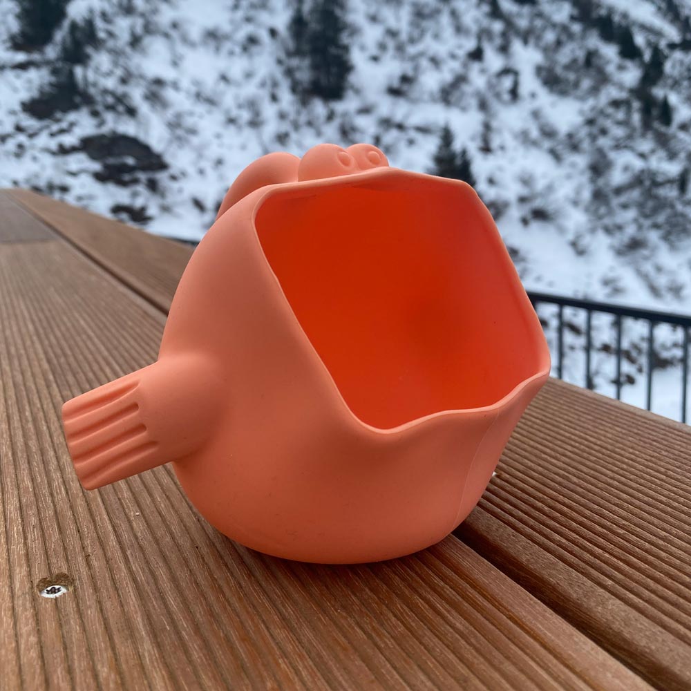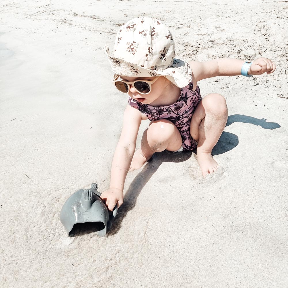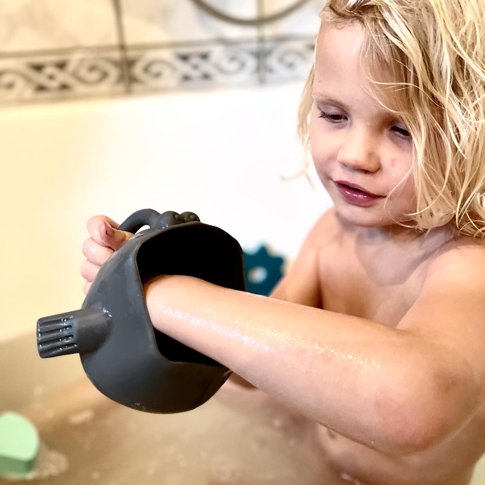 Dank des durchgehenden Griffs vom Kopf bis zur Schwanzflosse liegt der Fisch besonders gut in kleinen Kinderhänden. So lässt sich Wasser gießen oder Sand schaufeln – und sogar beim Haarewaschen wird er zum spaßigen Helfer. Mit seinen kompakten Maßen von 14 x 11 cm und dem weichen, flexiblen Silikon passt er in jede Tasche und ist ideal für unterwegs.
