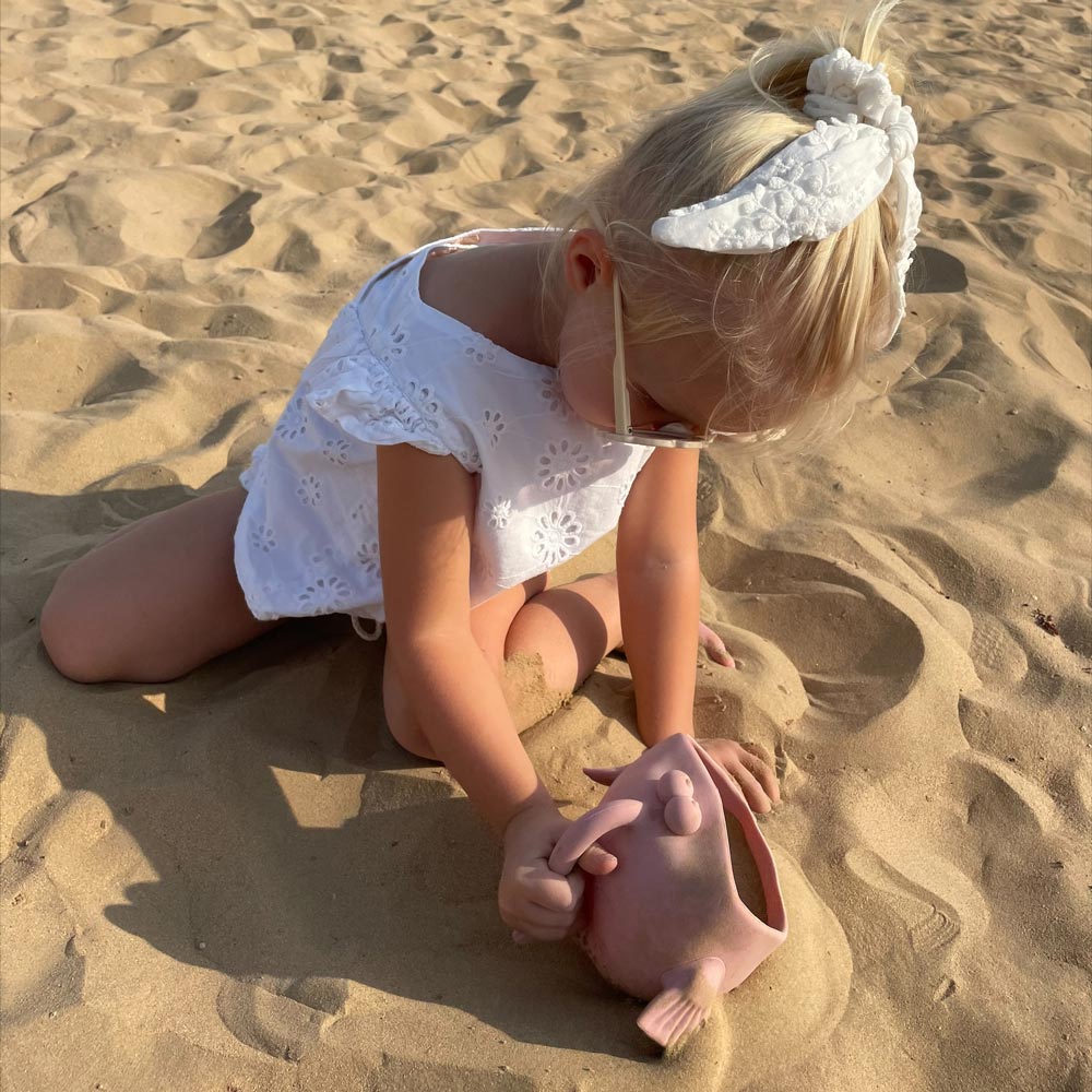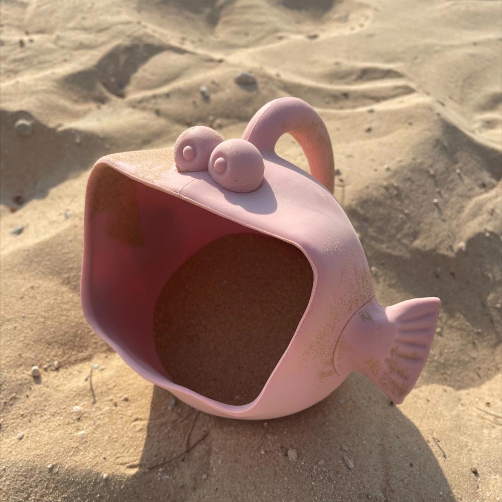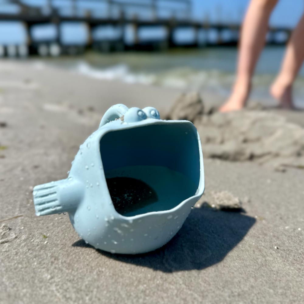 Mit seinem lustigen großen Maul, den Glubschaugen und einem praktischen Griff sorgt dieser süße Fisch sofort für gute Laune – egal ob am Strand, im Garten oder in der Badewanne. Als Schaufel und Gießkanne in Einem begleitet er dein Kind bei jedem Spiel und macht aus Wasser und Sand kleine Schätze.