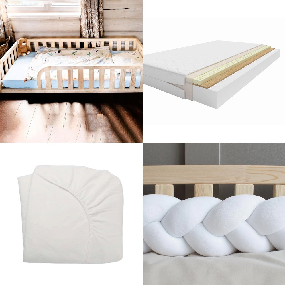 Set - Bodenbett Oko mit Matratze, Bettschlange & Schoner