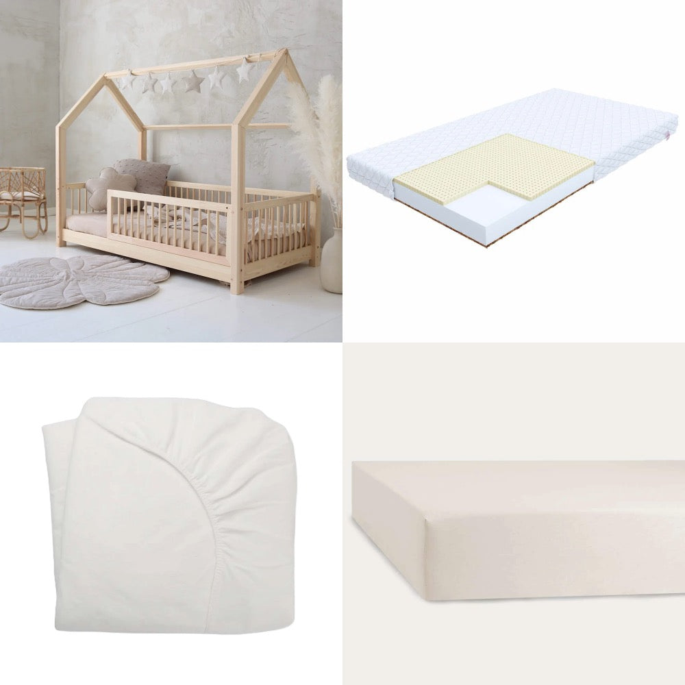 Set - Kinder Hausbett Flori mit Matratze, Laken & Schoner
