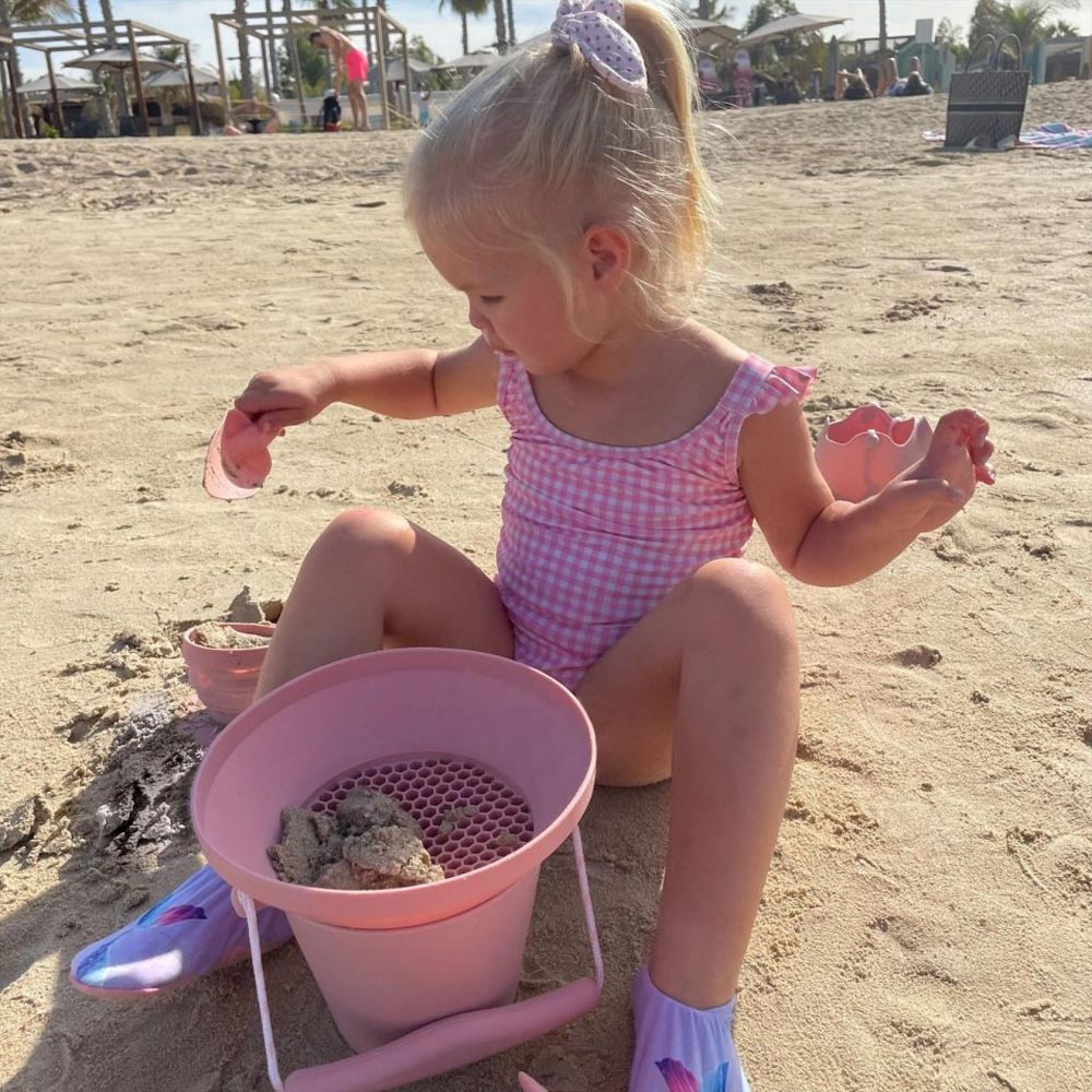Mit diesem flexiblen Sieb wird jeder Ausflug in den Sandkasten, an den Strand oder in die Badewanne zu einem kleinen Abenteuer. Kleine Schatzsucher können damit spielerisch Sand durchsieben, Muscheln entdecken oder beobachten, wie Wasser durch die Löcher fließt. Das sorgt nicht nur für leuchtende Kinderaugen, sondern fördert auch ganz nebenbei die Feinmotorik und Neugier.