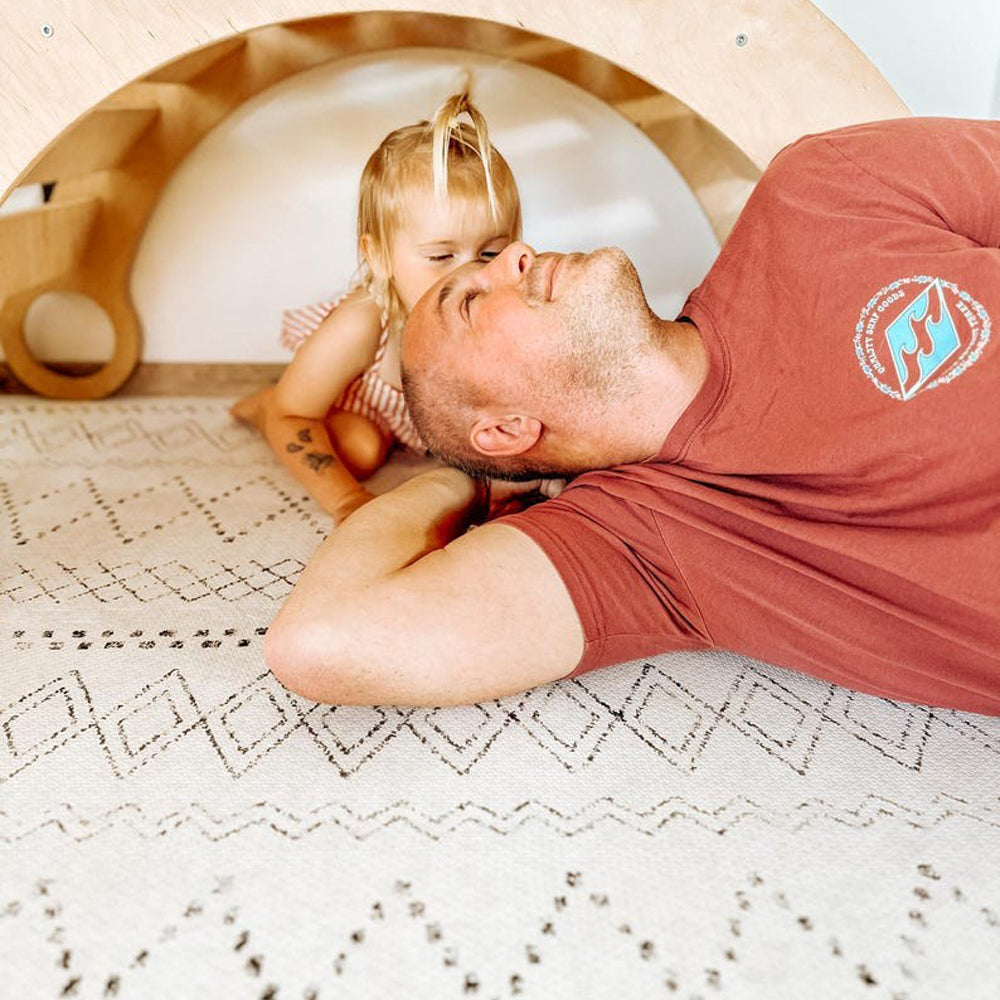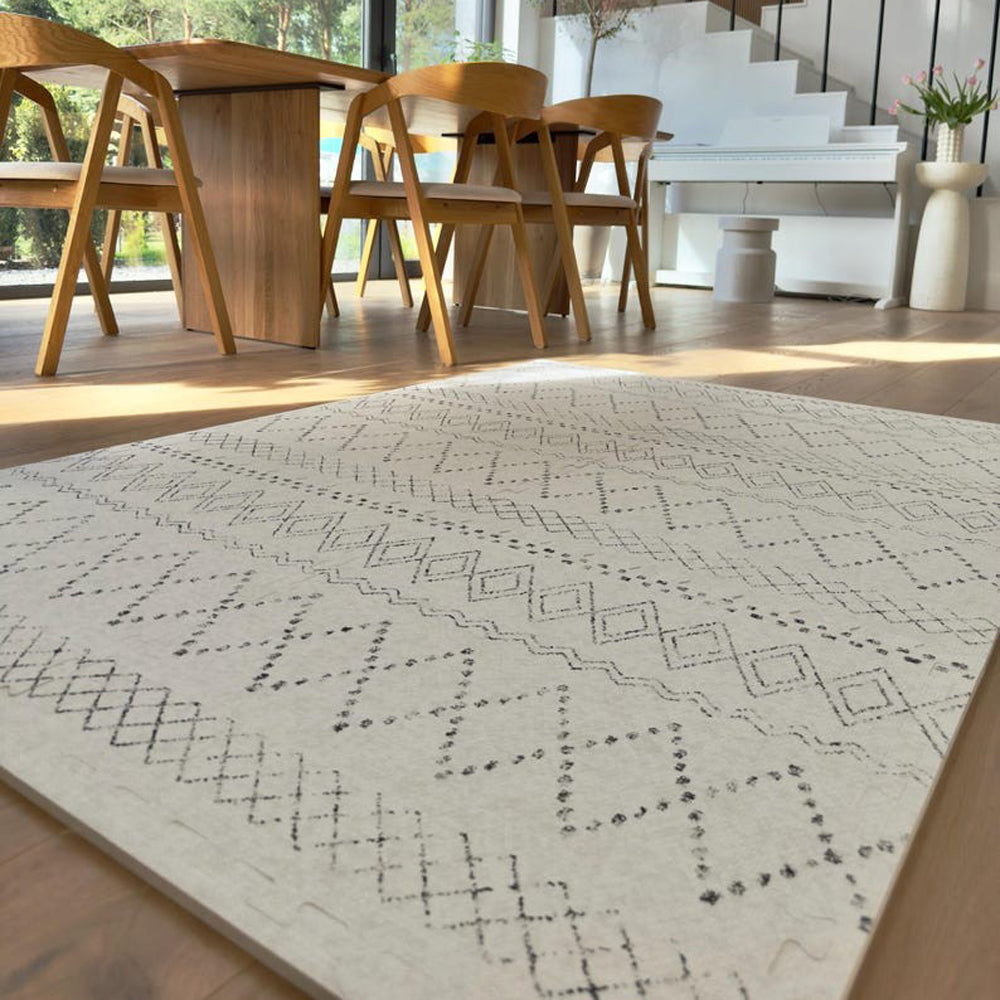 Mit ihrem eleganten Boho-Design in Elfenbein und Schwarz fügt sich die Matte harmonisch in dein Zuhause ein. Sie wird nicht nur zum gemütlichen Spielbereich, sondern auch zu einem echten Blickfang im Wohnzimmer oder Kinderzimmer. Dank des erweiterbaren Designs kannst du sie ganz einfach vergrößern, wenn dein Kind mehr Platz zum Spielen braucht.