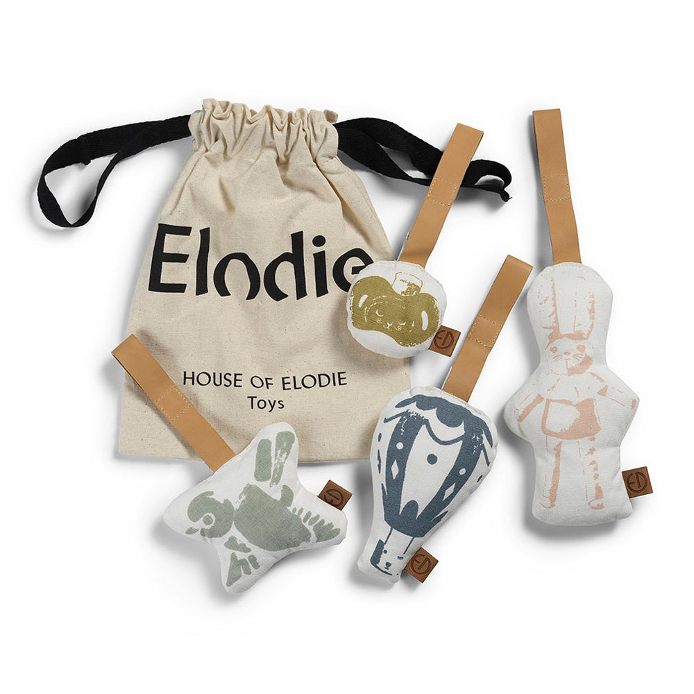 Die sanften Farben, weichen Materialien und abwechslungsreichen Formen fördern nicht nur die Feinmotorik, sondern auch die visuelle und auditive Wahrnehmung deines Kindes. Dank der praktischen Riemen lassen sich die Figuren ganz einfach am Spielbogen befestigen – oder auch an Kinderwagen, Wiege und Co.