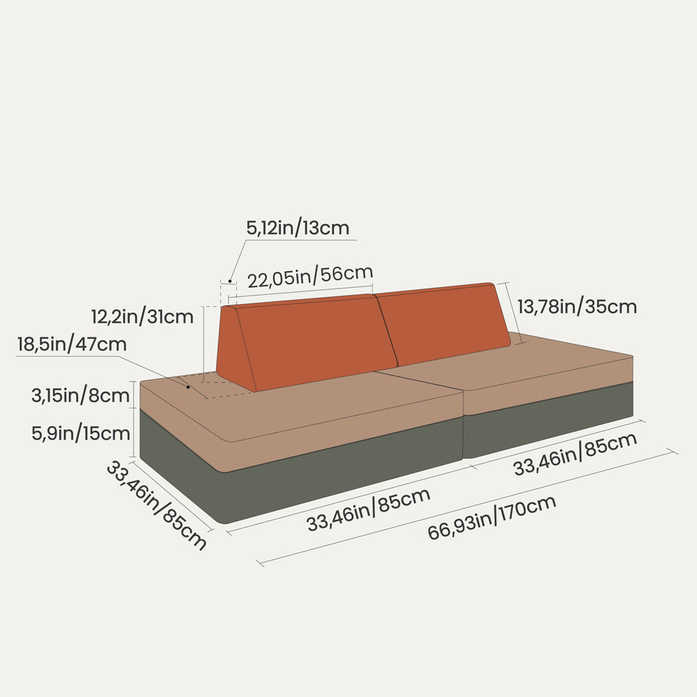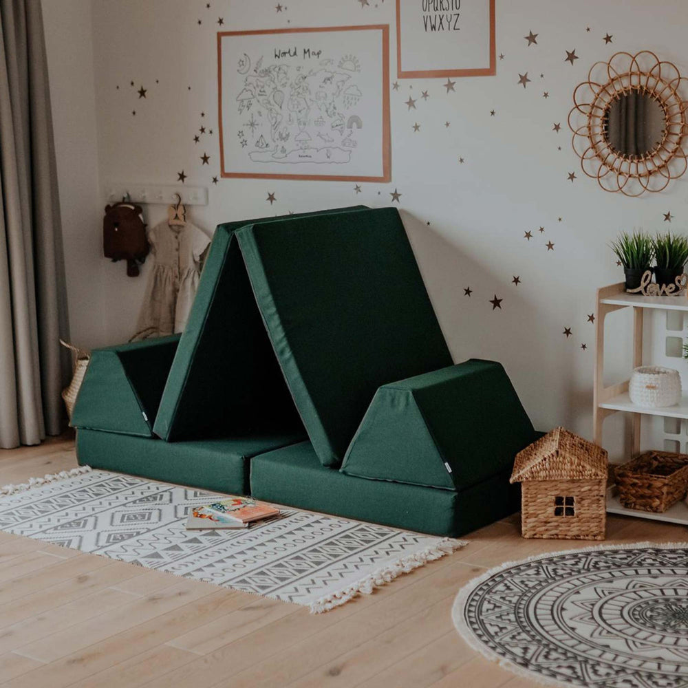 Verwandle das Spielmatratzen-Set in ein Sofa, Spielhaus, o.ä. – deiner Fantasie sind keine Grenzen gesetzt! Dein Kind kann sich frei entfalten, neue Abenteuer erleben und gleichzeitig von Bildschirmen fernbleiben. Die abgerundeten Kanten und weichen Matratzen sorgen dafür, dass Spielen sicher und sorgenfrei bleibt.