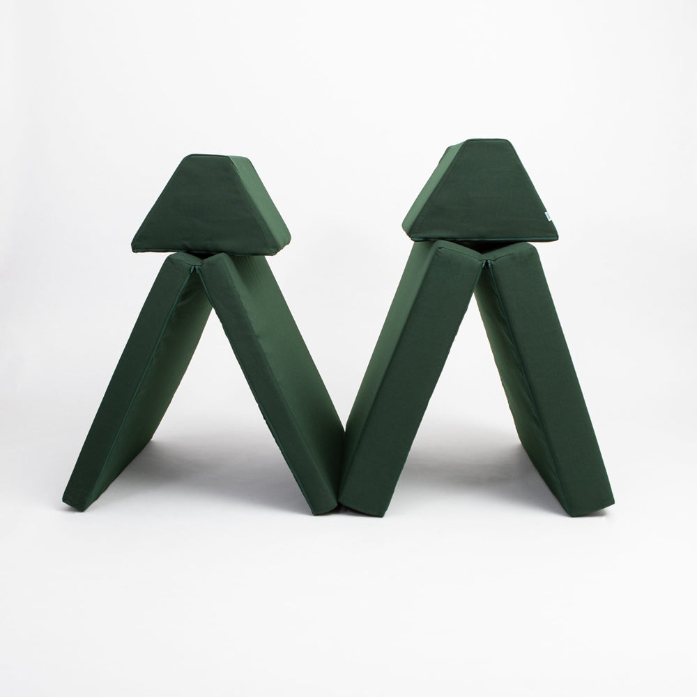 Mit der Basismatratze, der flexiblen Matratze und den trapezförmigen Kissen entstehen unzählige Spielmöglichkeiten. Dein Kind entwickelt dabei spielerisch Grobmotorik, Problemlösungsfähigkeiten und räumliches Vorstellungsvermögen. Gleichzeitig fördert das Set selbstständiges Spielen und regt die Neugier deines Kindes an.