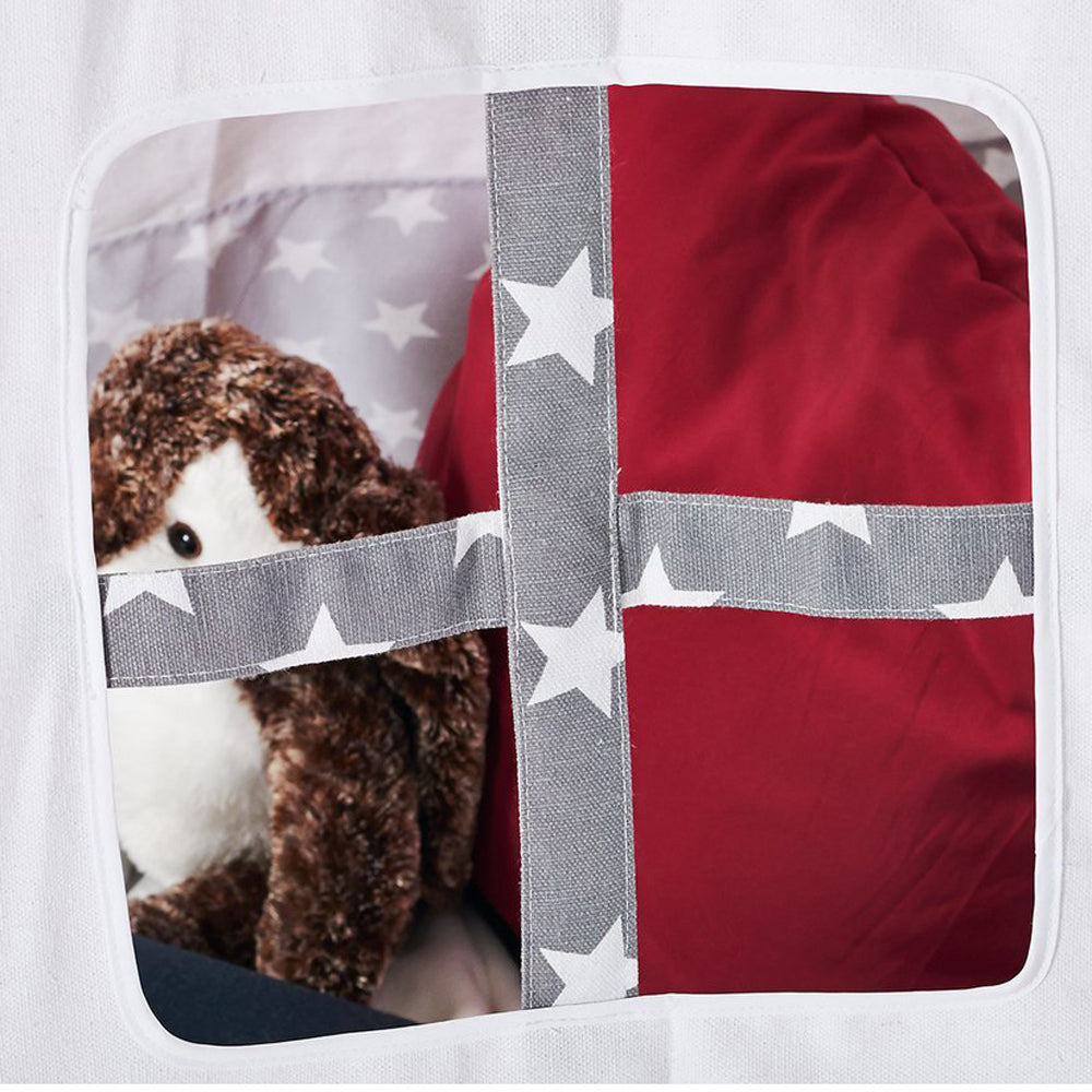 Durch das kleine Fenster kann dein Kind jederzeit nach dem Rechten sehen oder fröhlich nach außen winken. Das Zelt bietet genügend Raum für Kuscheltiere, Bücher und sogar Freunde – perfekt für gemeinsame Abenteuer im Kinderzimmer oder ein ruhiges Abendritual mit Mama oder Papa.