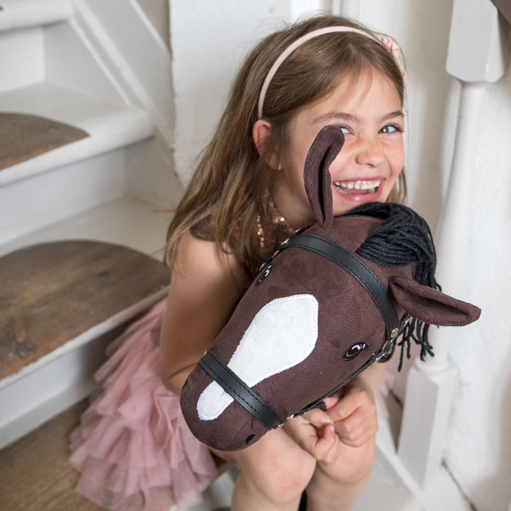 Steckenpferd für Kinder Hobby Horsing, Braun mit offenem Mund