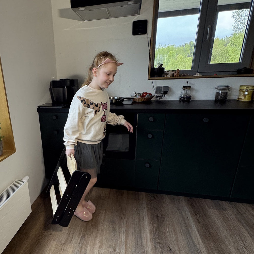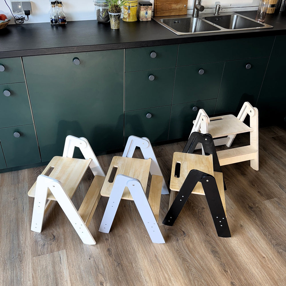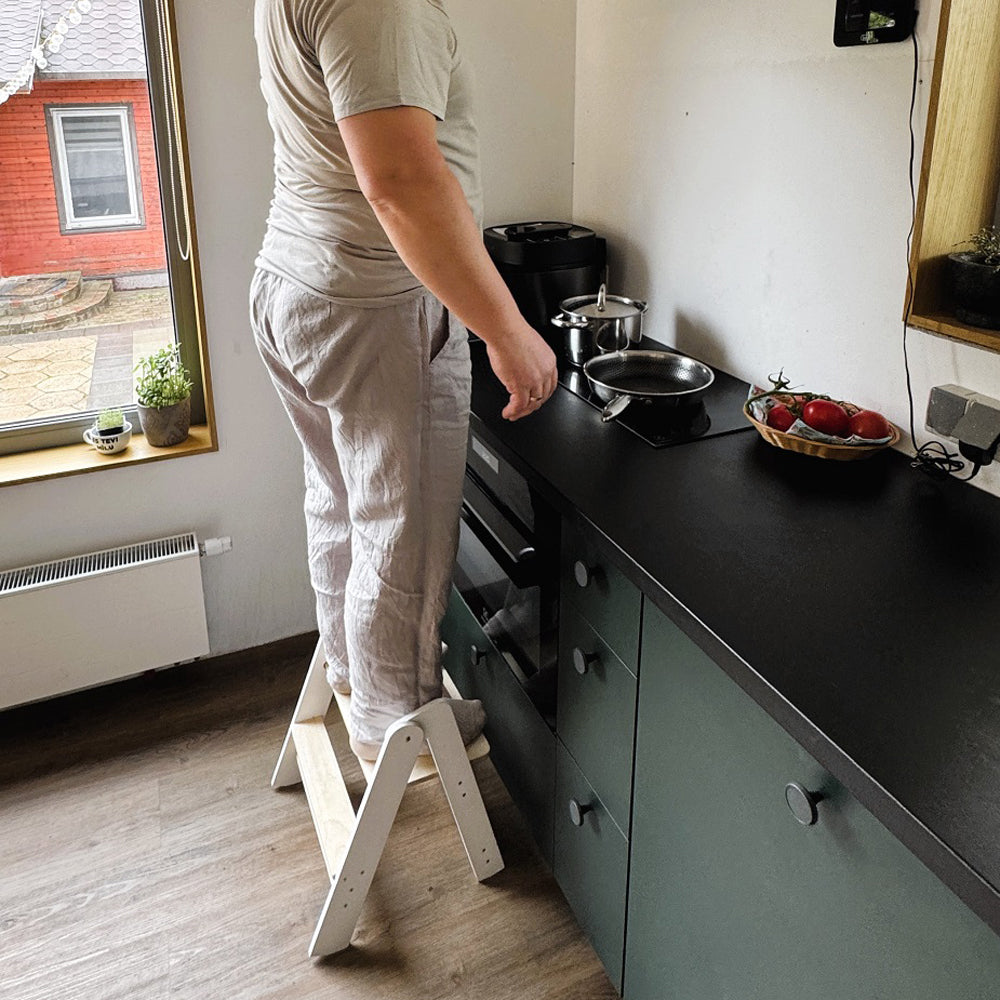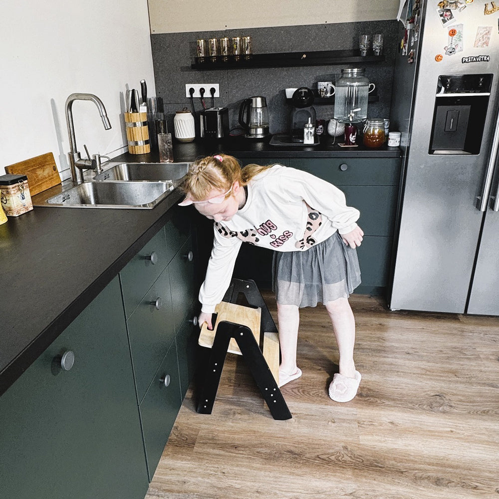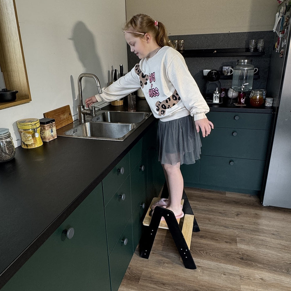 Mit diesem stabilen Tritthocker kann dein Kind endlich selbstständig die Welt entdecken. Ob in der Küche beim Helfen, im Bad beim Zähneputzen oder im Kinderzimmer beim Basteln – er gibt kleinen Füßen das Stückchen Höhe, das sie brauchen, um selbstbewusst zu handeln.