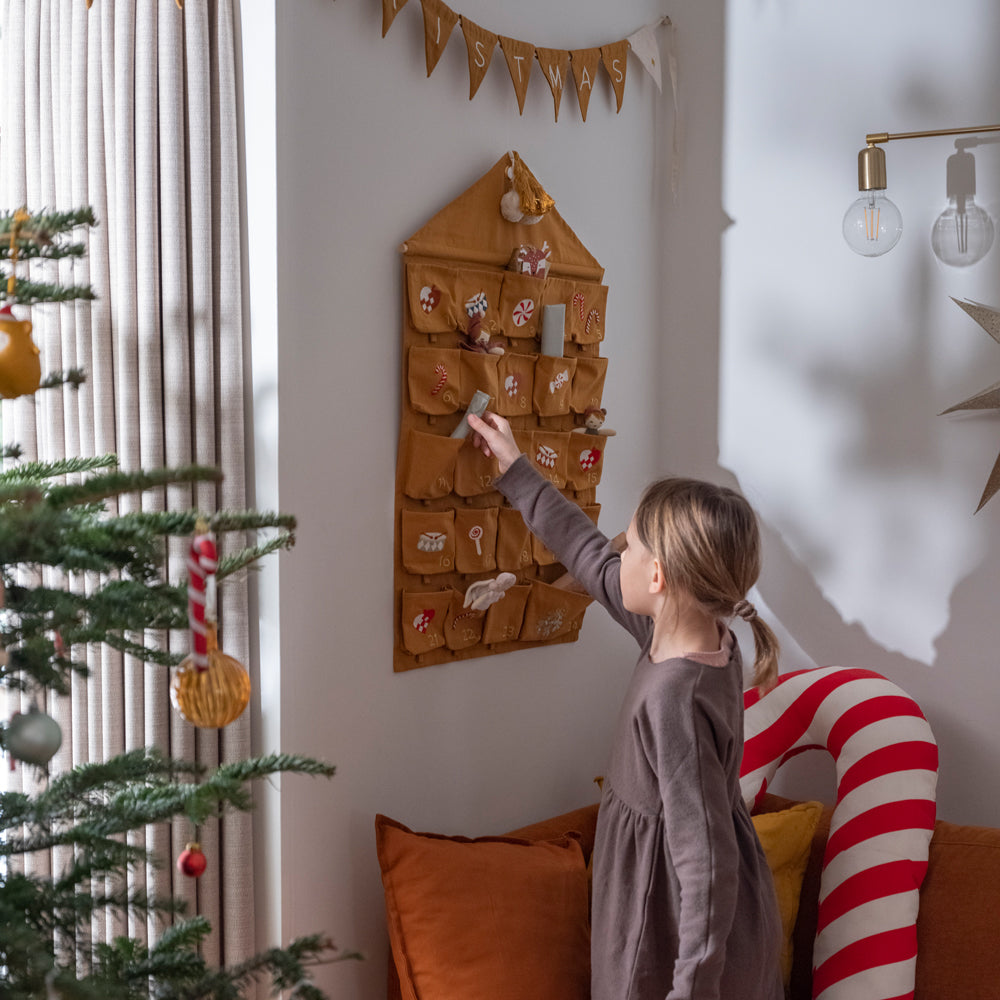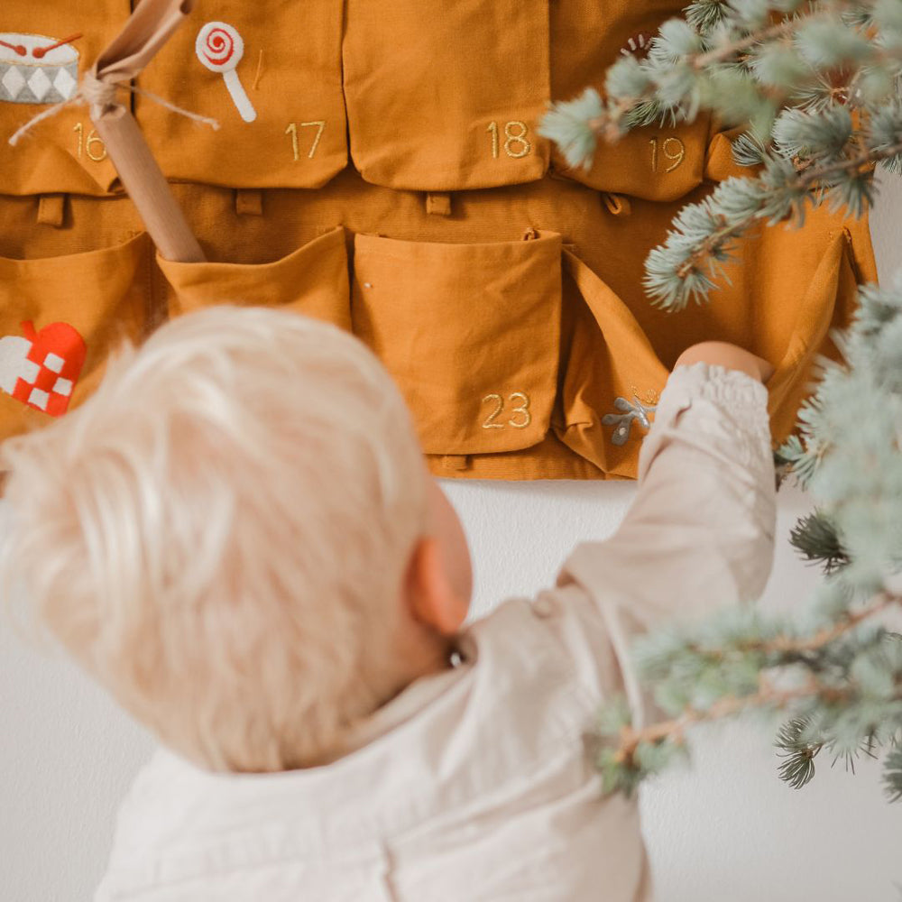 Mit seinen 24 geräumigen Taschen bietet der Kalender genug Platz für süße Kleinigkeiten, kleine Briefe oder liebevolle Botschaften. So entsteht eine wunderschöne Familienroutine, die das gemeinsame Zählen der Tage zu einem ganz besonderen Ritual macht. Der weiche Stoff aus Bio-Baumwolle sorgt für eine hochwertige Haptik und macht den Kalender zu einem langlebigen Begleiter – Jahr für Jahr wiederverwendbar.