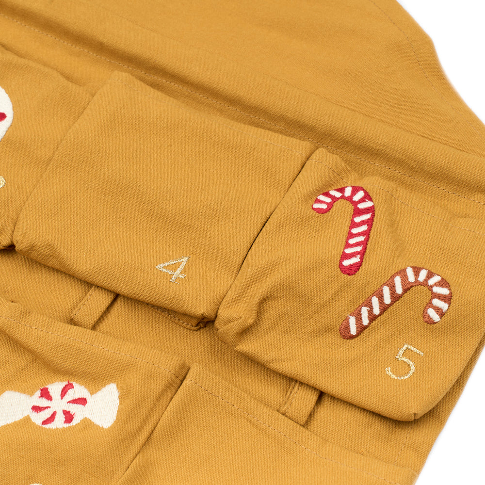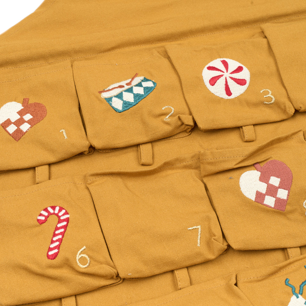 Dieser Adventskalender mit Einstecktaschen in warmem Ockerton bringt Weihnachtszauber in euer Zuhause – Tag für Tag. Die liebevollen Stickereien und verspielten Quasten erinnern an frühere Zeiten, als das Warten auf Weihnachten noch magisch war. Dein Kind wird es lieben, jeden Morgen ein neues Fach zu öffnen und kleine Überraschungen zu entdecken, die das Herz höher schlagen lassen.