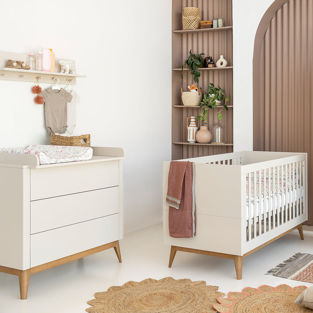 Das Wandregal Seth schafft einen liebevollen Platz für all die Dinge, die dein Kind täglich begleitet – von Kuscheltieren über Bücher bis zu Babypflegeprodukten. Der warme Champagner-Ton sorgt für eine harmonische, geborgene Atmosphäre im Kinderzimmer.