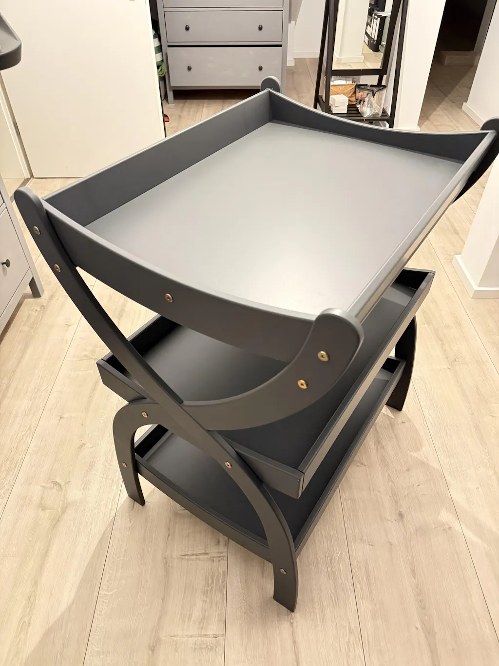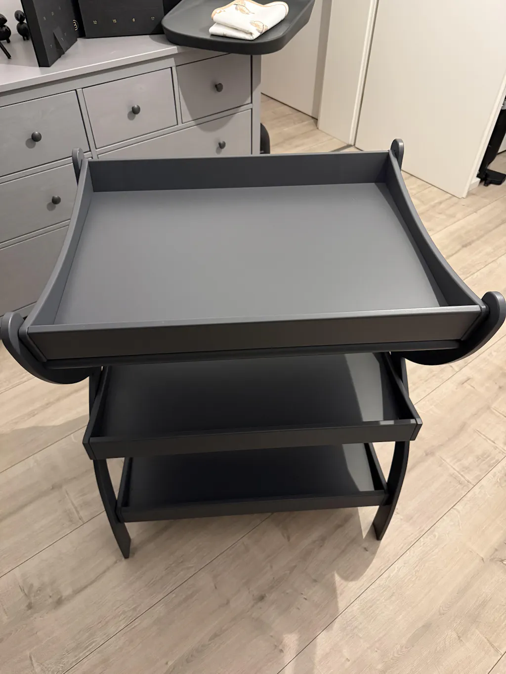 Mit seinen zwei großzügigen Ablagen hält der Wickeltisch Mooi alles griffbereit, was du täglich brauchst. Kein lästiges Suchen mehr – Windeln, Pflegeprodukte und Spielsachen sind immer in Reichweite. Das FSC-zertifizierte Birkensperrholz, veredelt mit kindersicherem Bienenwachs, sorgt nicht nur für eine nachhaltige Wahl, sondern auch für einen natürlichen, warmen Look, der in jeder der wählbaren Farbvariante – ob Natur, Weiß oder Dunkelgrau – perfekt in dein Zuhause passt.