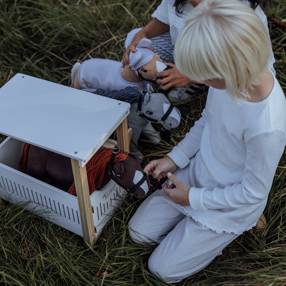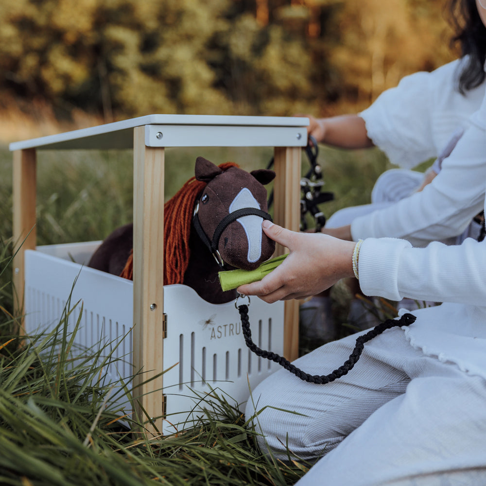 Der Stall ist stabil gebaut, leicht zu bedienen und ideal auf unsere 30-cm-Kuschelponys Lucky, Pixie oder Daisy abgestimmt – ein praktisches Zubehör, das vorhandenes Spielzeug sinnvoll erweitert. Er schafft Struktur im Spiel, bietet Platz für Ordnung und macht es deinem Kind leicht, das Pony immer wieder „nach Hause“ zu bringen. Eine wundervolle Ergänzung, die Spielwelten wachsen lässt und für viele liebevolle Momente sorgt.